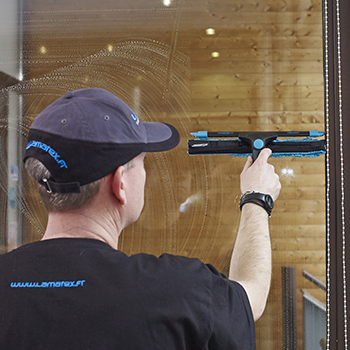 Grâce à la barrette LIQUIDATOR 3.0, reconnue pour sa capacité à laisser des vitres parfaitement sèches sans reprise, le COMBINATOR 2.0 assure un résultat net et homogène, même sur les grandes surfaces vitrées. Sa conception permet un contrôle optimal du mouvement et une excellente stabilité lors du travail.